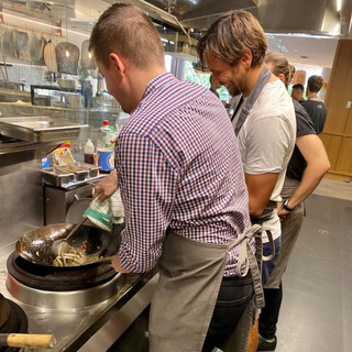 We cooked the Chill Crab in the wok; which was my favourite part. Woks in a domestic kitchen can be so frustrating; even with a gas stovetop it’s impossible to get the intense heat that you need to create that smoky, authentic flavour and sizzle. Not a problem at Three Blue Ducks! The industrial-strength gas flame turned me like crazy. We had a ball frying off the curry paste and poaching the crab in the sauce, with flames dancing about the wok all the while. Amazingly, the whole dish only took 10 minutes to cook once the wok got started.